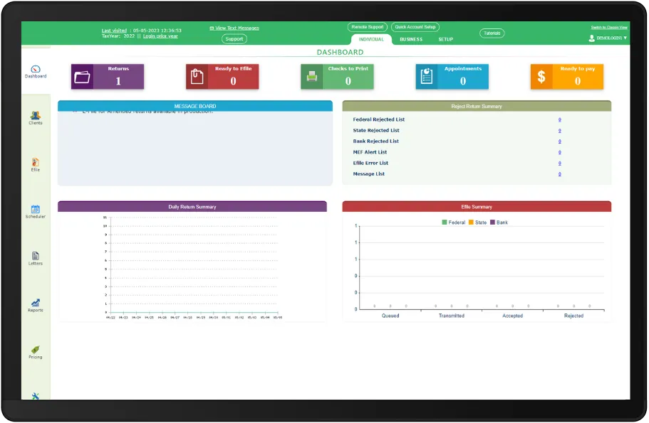 Our built-in reporting tools allow you to generate custom reports for your clients, providing detailed insights into their tax returns.